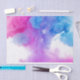 Este diseño presenta una imagen de pintura en el agua. Los colores rojo y azul están flotando y extendiéndose, mezclándose para crear tonos morados. Todo el efecto parece un penacho de humo.