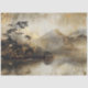 Esta pintura acuarela representa un apacible paisaje japonés. Una casa tradicional de madera, parcialmente oscurecida por un frondoso follaje, se encuentra en un lugar tranquilo a orillas del agua.