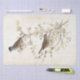 Un guerrero eurasiático y femenino de la gorra negra sentado en una rama florida blanca sobre una hoja de pergamino. Ideal para proyectos de desconexión o transferencia de muebles. Para el astuto amante de la naturaleza.