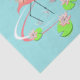 Un par de flamencos rosados animados agita sus alas y riza sus plumas contra un fondo acuoso azul con las cañas y los lirios de agua. Un diseño elegante con un tacto retro que se puede personalizar con su propio texto, imágenes e ideas. Una imagen digital original del arte creada por moda peculiar.