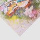 Una bonita y elegante ilustración de acuarela en tonos rosados, verdes y amarillos de un violín rodeado de hojas con partitura al fondo. Perfecto para envolver regalos o proyectos de decoupage.
