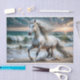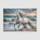 Caballo blanco majestuoso en una playa dramática. Transforma muebles costeros y aumenta valor y belleza. Perfecto para hogares de playa.
