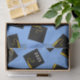 Gorras de graduación creativas negras y doradas sobre un fondo azul claro. Edite el texto para personalizar para la clase de graduados del 26.