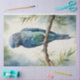 Esta delicada pintura acuática cuenta con un encantador paracaídas azul encaramado en una rama de árbol de eucalipto, rodeado de suaves hojas verdes. Las suaves pinceladas y la relajante paleta de colores crean un ambiente tranquilo e inspirado en la naturaleza, perfecto para los amantes de las aves y del arte botánico.