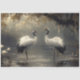 Este sereno cuadro presenta un elegante par de grúas en un pantano helado, rodeado de suaves tonos atmosféricos que evocan una sensación de tranquilidad. Los detalles delicados y la paleta de colores mullidos crean un paisaje natural atemporal y elegante, perfecto para los amantes del arte de las aves y los humedales.