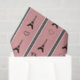 Ilustracion de París con Torre Eiffel y decoración del corazón y diseño de texto de París sobre fondo rayado negro, blanco y rosa