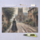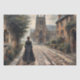 Una escena nostálgica de un pueblo antiguo con una mujer caminando por una calle antigua, perfecta para proyectos de desconexión de campo. Esta elaboración de papel tisular captura un encanto intemporal para tus esfuerzos creativos.