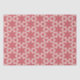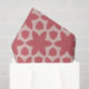 El patrón presenta un diseño simétrico y repetitivo con un motivo audaz y floral. Consta de formas de dos colores principales: un coral rojo profundo y un fondo rosa pálido. El elemento central es una flor grande y estilizada con seis pétalos de color rojo coral. Alrededor de esta flor hay formas geométricas adicionales, incluyendo formas pétalas y poligonales, creando un diseño equilibrado y armonioso. El fondo rosa pálido contrasta con el resto, por lo que destacan las formas de coral rojo.