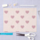 Este diseño presenta un patrón repetido de corazones de amor rosados en un fondo de color crema.