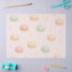 • Soft watercolor macarons in mint, peach, lemon, and blush