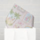 This Christmas tissue paper features pastel nativity scenes of baby Jesus sleeping in a manger with Mary and Joseph, three wise men and angels. There is a light pink striped background.