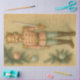 This soft, pastel Christmas nutcracker stands proudly with a golden crown and raised sword, dressed in blush pink and mint green with vintage-style detailing. Surrounded by ornaments, pine branches, and falling snow, the artwork delivers a charming, whimsical take on classic nutcracker décor — perfect for pastel holiday lovers and cottagecore Christmas crafting.