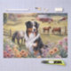 Sumérjase en la apacible belleza del campo con este exquisito diseño de papel de descomposición que presenta a un pastor australiano con una elegante ubicación en un campo pintoresco. Cuando el sol se pone en el fondo, dando un cálido resplandor al granero rústico y a los animales de los alrededores, esta encantadora escena captura la esencia de una velada tranquila en la granja. Perfecto para añadir un toque de encanto natural a sus proyectos de artesanía.