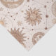 Papel tisú con elegante patrón botánico celestial que presenta lunas, estrellas, planetas, ojos místicos y delicadas ramas frondosas en un estilo minimalista negro y crema. Ideal para amantes de la astrología, buscadores espirituales, entusiastas de la naturaleza y cualquiera que ame la estética celestial boho.