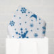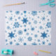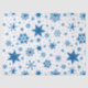 Vibrante patrón de copo de nieve azul en un fondo blanco, con diversas formas y tamaños. Ideal para temas de invierno, fiestas, Navidad, tarjetas de felicitación y proyectos de diseño festivo.