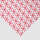Papel higiénico de envoltura de regalo con un patrón de copo de nieve rojo sobre un fondo blanco.