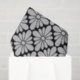 Este divertido y moderno patrón recuerda a los diseños de flores de concho plateado que se ven a menudo en cinturones y joyas en el suroeste estadounidense. El papel de tejidos presenta flores en forma de diamante gris sobre fondo negro