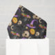 Un patrón de varias cosas con temática de Halloween como gorras brujos, gatos negros, cráneos