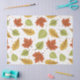 Papel de tejido naranja, verde y amarillo que muestra un patrón de hojas.