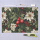 Patrón floral clásico contemporáneo de los Navidades de la poinsettia flores, bayas y ramas en blanco y verde