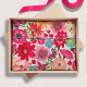 Ducha de novia bohemio moderna con flores silvestres brillantes con el texto colocado en una banda blanca. Con tonos brillantes rosa, naranja, rojo, amarillo, azul y verde flores botánicas inspiradas en flores silvestres y jardines rústicos modernos acuarela con sutil vegetación y tipografía de guión minimalista moderno en patrón de fondo beige. Obra de arte original pintada a mano por Caroline Bonne Müller