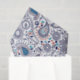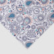 Motivo moderno de conchas paisley. Lágrimas ornamentales y motivos florales en una imprenta sin fisuras en azul oscuro con un acento azul brillante y rojo castaño. Establecer en un fondo blanco