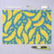 Añade un toque tropical a tu decoración de casa con este vibrante estilo bananero de fondo azul. El patrón presenta bananas ilustradas en diferentes etapas de pelado, cada amarillo con manchas marrones.