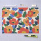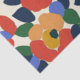 Un diseño floral abstracto, vibrante y audaz, con grandes flores rojas, naranjas y azules con hojas verdes y navales sobre un fondo crema. Las formas lúdicas y los colores vivos crean una estética artística moderna, perfecta para tejidos, tapices o estampados decorativos.