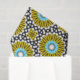 Diseño elegante de papel tisular con un patrón impecable de formas geométricas en amarillo, azul claro, negro y blanco.