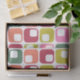 Una elegante huella geométrica moderna en los colores retro de los años 70 de rojo, verde, naranja, rosa y verde limón sobre blanco es la manera perfecta de añadir un estilo vintage a tus regalos de vacaciones este año.