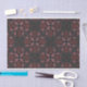 Este papel tisular presenta un diseño intrincado y simétrico, caracterizado por una armoniosa mezcla de tonos oscuros, acentuados con elementos rosados vibrantes que se asemejan a flores o motivos ornamentales. Cada motivo es minuciosamente detallado, mostrando una meticulosa artesanía. El estilo general del papel tisular evoca un sentido de la artesanía tradicional, transformando un simple elemento utilitario en una obra de arte. La estética combina elementos tradicionales y modernos, lo que la hace versátil para diversos usos.