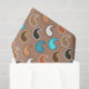 Papel de tejidos en un minimalista y moderno patrón de paisajes, realzado con puntos - tonos marrones, rojos, crema y turquesa, sobre un fondo marrón de taupe medio