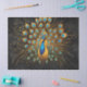 Papel De Seda Pavo real dorado con plumas azules en negro