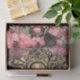 Un pavo real elegante en un marco dorado con flores rosadas. Perfecto para envolver regalos con elegancia o para proyectos de decoupage y manualidades con papel.