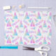 Este es un divertido papel de tejido de Navidades que presenta un patrón de 3 diferentes diseños de árboles de Navidad y las palabras "Peace Joy Love" en colores arcoiris pastel sobre un fondo blanco. Ideal para usar como relleno de bolsos de regalo o para un proyecto de desconexión de Navidades.