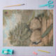 Elegant, retro vintage peacock pair on rocks by a gentle stream with water lilies and French advertising ephemera created collage. Antique Vintage artwork graphically designed by internationally licensed artist, Audrey Jeanne Roberts, copyright.