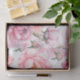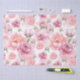 Hermoso papel de regalo sobre un fondo blanco con una variedad de peonías rosadas de acuarela.