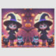 Papel De Seda Pequeña bruja con gatos y calabazas,