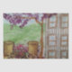 El árbol floreciente con flores en caída entre barriles y un pequeño vagón se presenta en esta obra de arte de medios mixtos hecha a mano, un recordatorio de la primavera pasada.