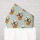 ¡Ponga un pedazo del amor de oro en sus paquetes! Características del este diseño del papel seda un retrato tejado de la acuarela de un perro sonriente del golden retriever, en un fondo azul.