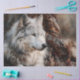 Give your piece a luxe, storybook feel with a white wolf decoupage for furniture set against an ornate Persian-style rug. Spice reds, espresso, and onyx threads weave through the scene, adding richness without overpowering your finish. Perfect for wide drawer banks, cabinet doors, and armoire panels. The portrait prints burnish cleanly and seal smooth, pairing beautifully with walnut stains, warm greige paints, and aged-brass or oil-rubbed bronze hardware.