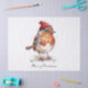 pintura acuarela de un ladrón rojo con un gorra rojo de invierno al estilo navidad