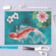 Un bonito diseño de papel tisular de estilo japonés con un Koi Fish nadando en un estanque con una almohadilla de lirio y flores flotantes de cerezo. Si necesita ayuda con la personalización o elementos adicionales con un diseño personalizado, no dude en ponerse en contacto conmigo usando el botón de mensaje.