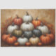 Una pintura ricamente saturada de una vibrante pila de calabazas en varios colores otoñales, celebrando la calidez y abundancia de la temporada de otoño.
