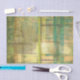 Una pintura abstracta de Jennifer Goldberger que utiliza tonos turquesa y verde dorados para crear un ambiente cálido y familiar. Un agradable paseo por el bosque durante la primavera o el verano produciría algunos de estos colores. ¡Trae el regalo de la naturaleza a tu casa comprando esta pieza!