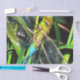 Blue Dragonfly Shimmering Wings Painting es una libélula en reposo contra un fondo verde de maleza de río. Un regalo con un tema de insectos alados perfecto para los amantes del skimmer, entomólogos, amantes de las libélulas, amantes de insectos y cazadores de bichos traseros SOBRE EL ART © 01 agosto 2016 Tracey Harrington Simpson Original pintado a mano en acrílico y mejorado.