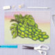 Un ilustracion de pintura abstracto de color lápiz muestra grandes uvas verdes frente a un fondo de color pastel. Esta imagen está completamente dibujada a mano con tinta y coloreada con lápices, escaneada y refinada por el ordenador. Todo el borrón está pensado y es parte de esta obra de arte única.