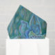 Pintura de una bonita flor azul verde blanca y morada de orquídeas sobre un hermoso fondo azul de color azul verde blanco y violeta.