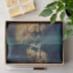 NC Wyeth , era un artista estadounidense conocido por sus pinturas realistas y ilustraciones del antiguo oeste. Durante su vida, Wyeth se convirtió en uno de los mayores ilustradores de los Estados Unidos y creó más de 3.000 pinturas y ilustraciones. Sus primeros viajes al viejo oeste inspiraron imágenes de vaqueros y nativos americanos que dramatizaron la frontera. Esta pintura se llama "La llamada de alce", y representa a un cazador indio sentado en una canoa llamando a alce con una trompeta de corteza rodada.