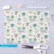 Este papel de tejido de Navidades tropicales festivo presenta un patrón de escenas de playa vacacional con palmeras decoradas con hilos de colores y sillas de playa con vistas al agua, intercaladas con flamencos rosas en sombreros de santa, y gaviotas encaramadas en almohadas decoradas.
